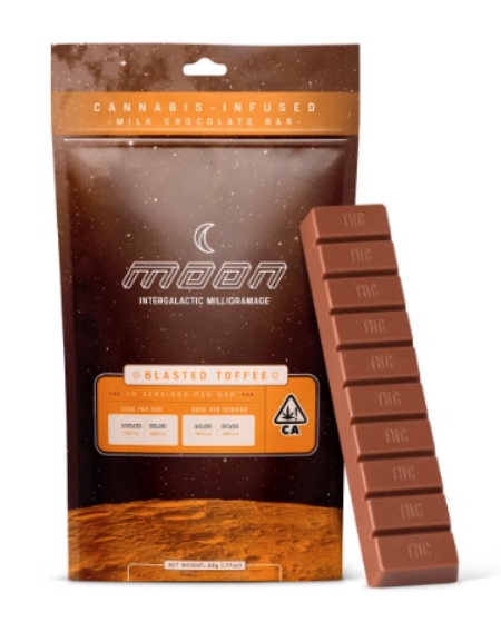 Blasted Toffee Moon Bars  is a cannabis-infused edible that combines chocolate and toffee flavors with THC, designed to provide a relaxing and balanced experience.